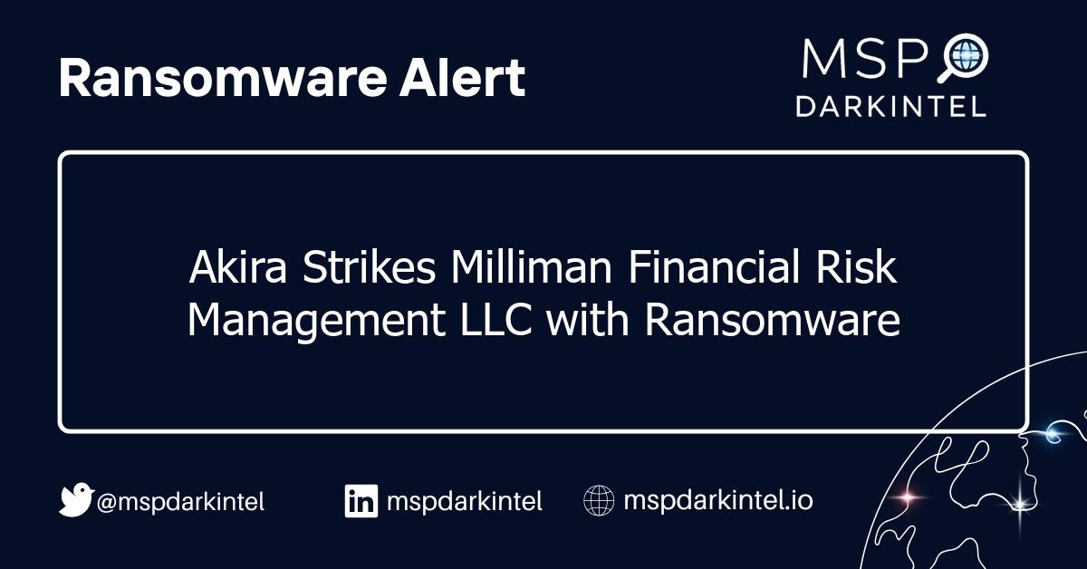 On October 6, 2025, the ransomware group Akira publicly claimed responsibility for an attack targeting Milliman Financial Risk Management LLC (milliman.com), a U.S.-based global leader in financial risk management. According to the threat actor’s post, they intend to release 260GB of sensitive data unless negotiations are initiated.