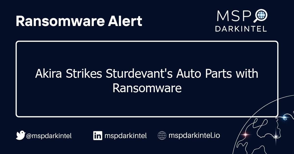 Ransomware Alert: Akira Strikes Sturdevant’s Auto Parts