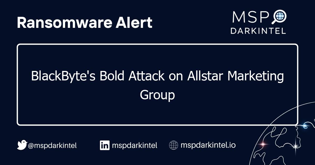 On July 16, 2025, the ransomware group BlackByte publicly claimed responsibility for an attack targeting Allstar Marketing Group (allstarmg.com), a U.S.-based performance marketing company. According to the threat actor’s post, they intend to release sensitive data unless negotiations are initiated.