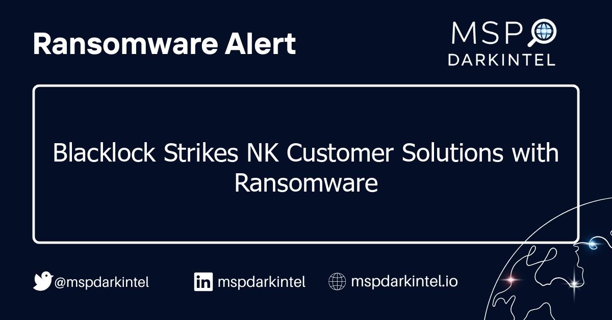 On June 29, 2025, the ransomware group Blacklock publicly claimed responsibility for an attack targeting NK Customer Solutions (nkcustomer.com), a U.S.-based company specializing in business services. According to the threat actor’s post, they intend to release sensitive data unless negotiations are initiated.