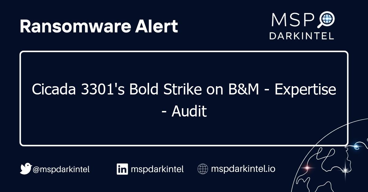 B&M – Expertise – Audit operates within the auditing sector and is known for providing detailed financial audits and consultancy services. The attack by Cicada 3301 poses a significant risk to their data security and client confidentiality.