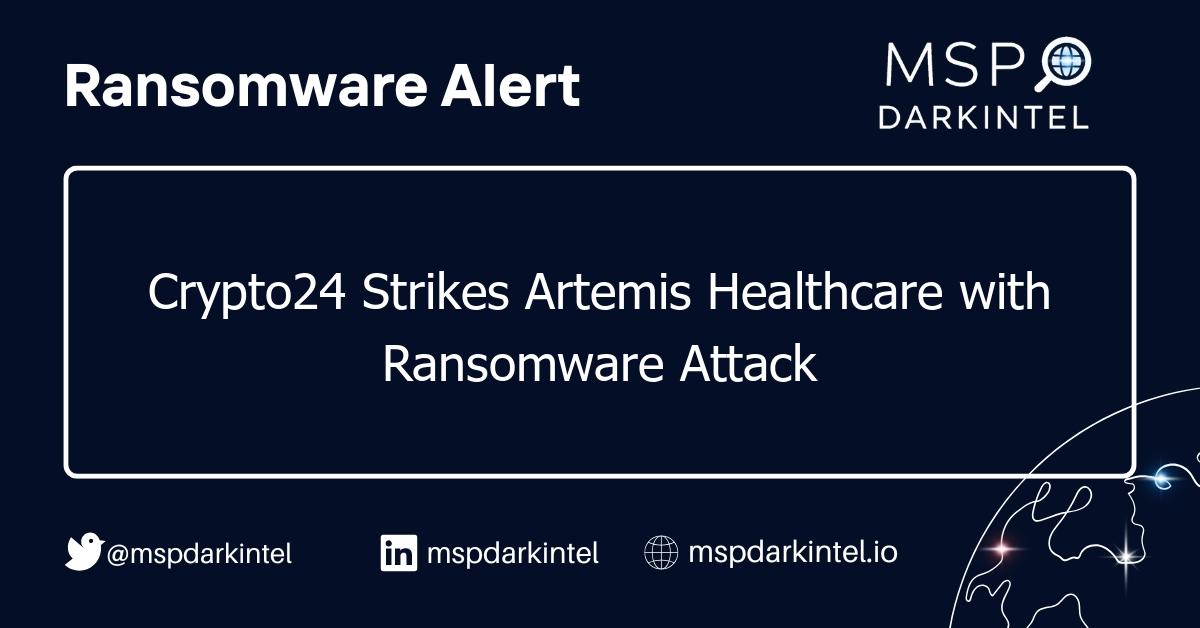 Artemis Healthcare, Inc is a leading provider of healthcare services in the USA. The organization specializes in offering comprehensive medical services and maintains extensive databases containing sensitive patient information. The attack on Artemis Healthcare by Crypto24 underscores the critical need for security measures in the healthcare sector.