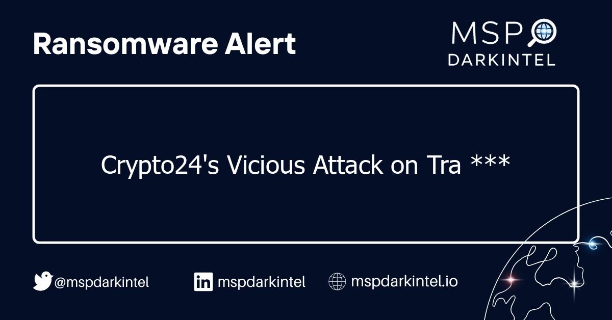 On June 15, 2025, the ransomware group Crypto24 publicly claimed responsibility for an attack targeting Tra *** (tra ***), a company involved in an unspecified industry. According to the threat actor’s post, they intend to release sensitive data unless negotiations are initiated.