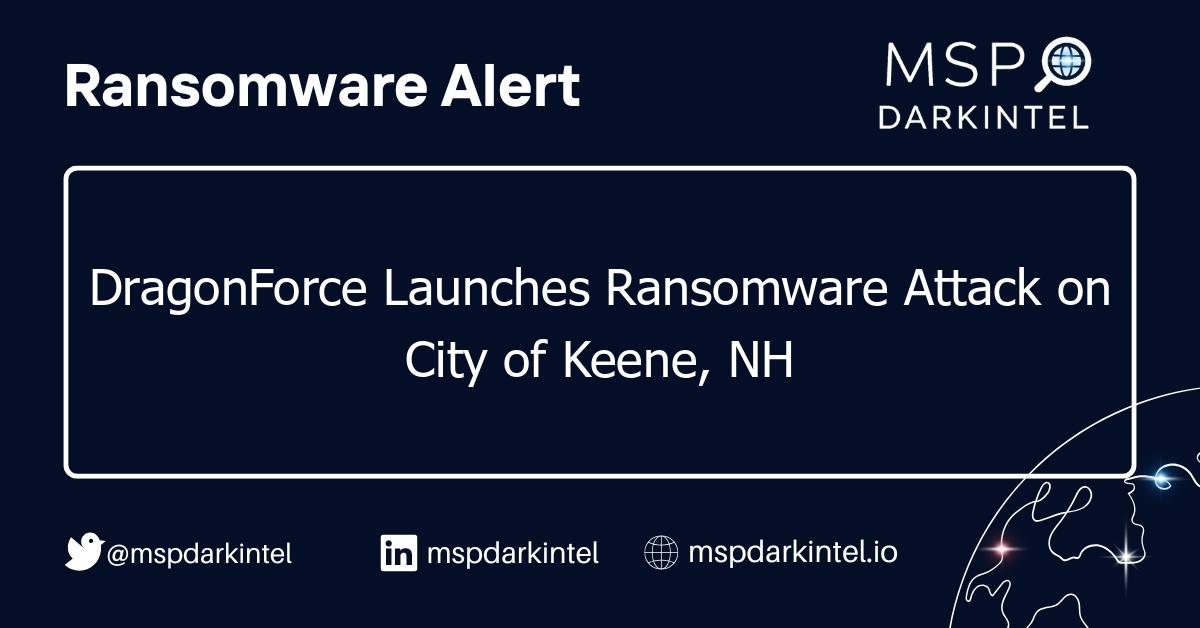 On July 11, 2025, the ransomware group DragonForce publicly claimed responsibility for an attack targeting City of Keene, NH. The attackers have threatened to release sensitive data unless their demands are met.