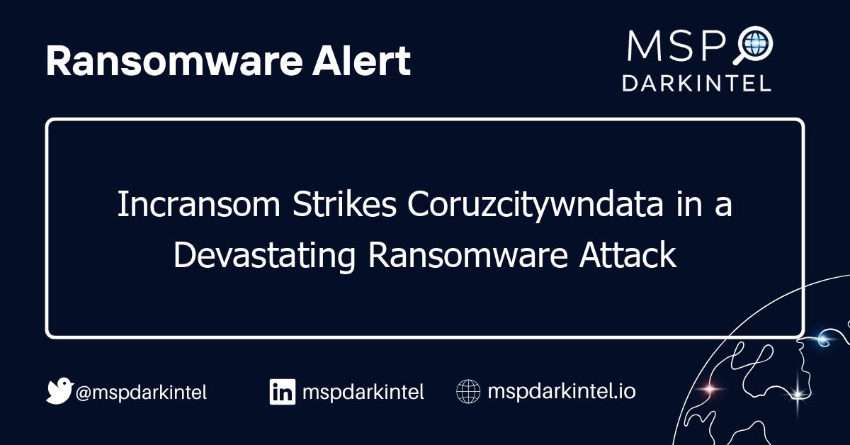 On July 1, 2025, the ransomware group Incransom publicly claimed responsibility for an attack targeting coruzcitywndata+. The attackers have threatened to release 250GB of sensitive financial data unless negotiations are initiated.