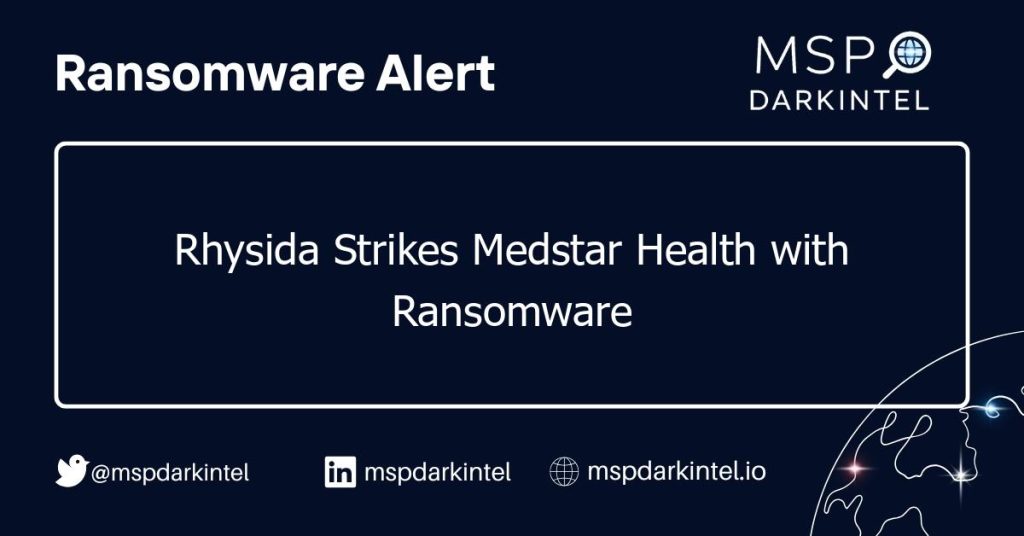 Medstar Health, a major healthcare provider in the USA, was attacked by the Rhysida ransomware group, risking sensitive patient data.