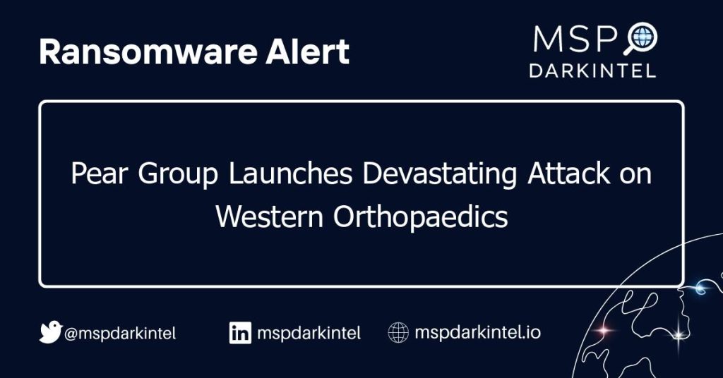 The healthcare provider Western Orthopaedics has fallen victim to a ransomware attack by the Pear group, threatening to release sensitive data.