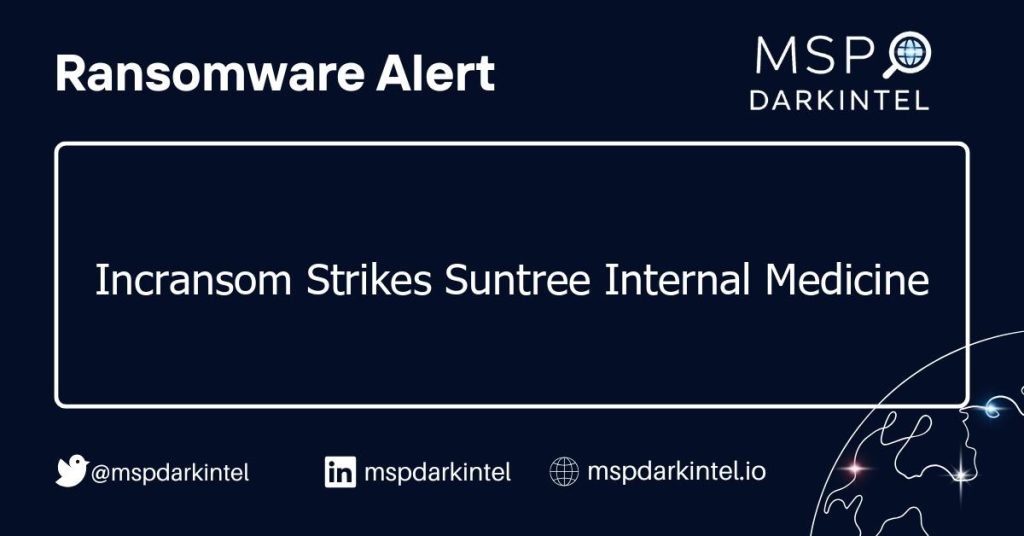 Suntree Internal Medicine, a healthcare provider in USA, is targeted by the ransomware group Incransom, threatening to release sensitive data.