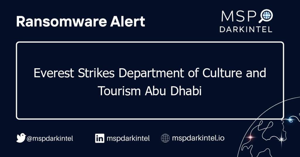 On July 12, 2025, the ransomware group Everest claimed responsibility for an attack on the Department of Culture and Tourism Abu Dhabi, threatening to release sensitive data unless contacted.