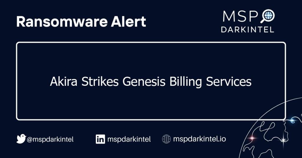 Genesis Billing Services, a pathology billing company in the USA, has fallen victim to a ransomware attack by the Akira group, risking sensitive financial data.