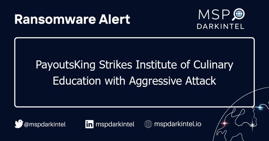 The Institute of Culinary Education has fallen victim to a ransomware attack by the group PayoutsKing, threatening sensitive data exposure.