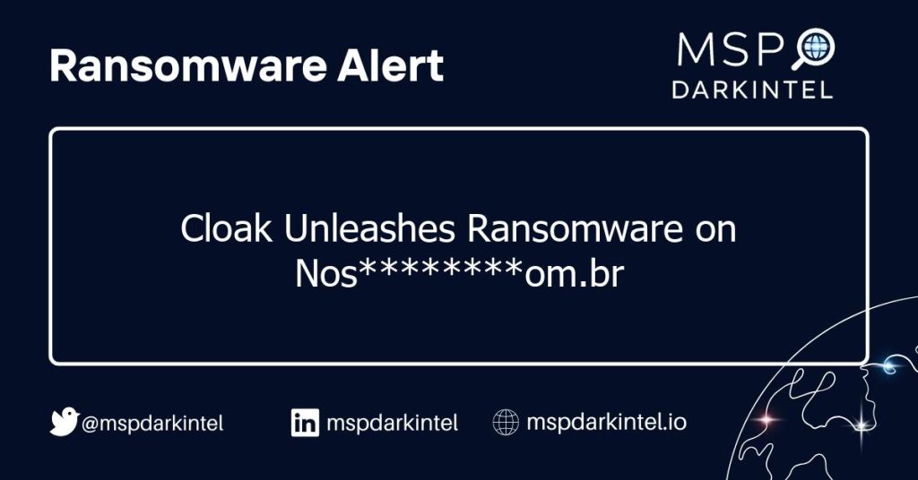 The ransomware group Cloak has launched an attack on Nos********om.br in Brazil, threatening to leak sensitive data unless negotiations begin.