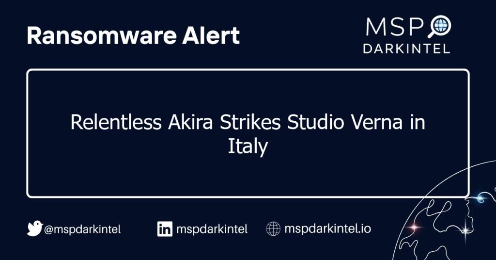 The Akira ransomware group has launched a significant attack on Studio Verna Società Professionale, threatening to release sensitive data unless negotiations occur.