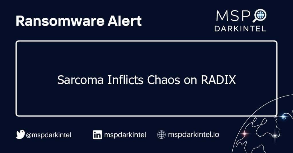 The Sarcoma ransomware group has targeted RADIX, a non-profit foundation in Switzerland, threatening to release sensitive data unless negotiations commence.