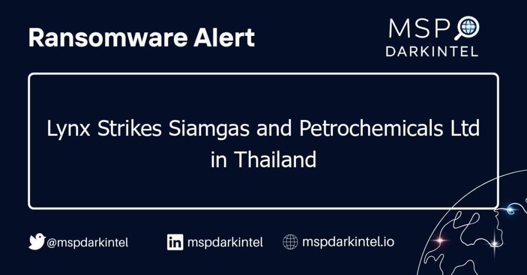 Lynx ransomware group has attacked Siamgas and Petrochemicals Public Company Ltd, a leading firm in Thailand. Sensitive data is at risk of being leaked unless negotiations are started.