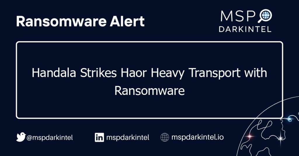 The Handala ransomware group has targeted Haor Heavy Transport, an Israeli overland transport company, threatening to release sensitive data unless negotiations are initiated.