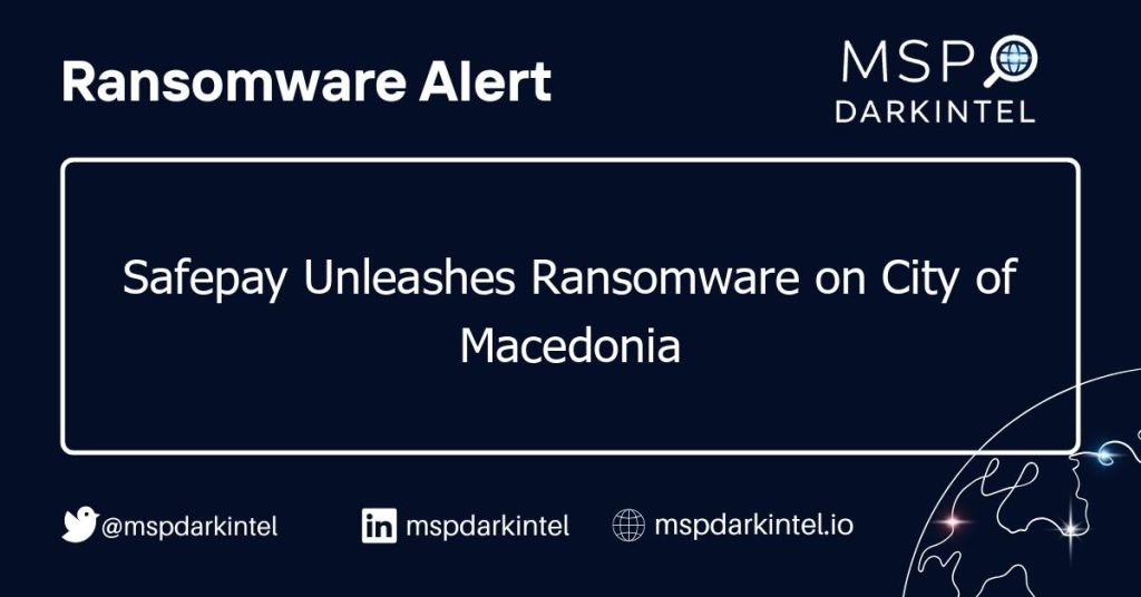 The ransomware group Safepay has reportedly launched an attack on the City of Macedonia, Ohio, threatening to release sensitive data unless their demands are met.