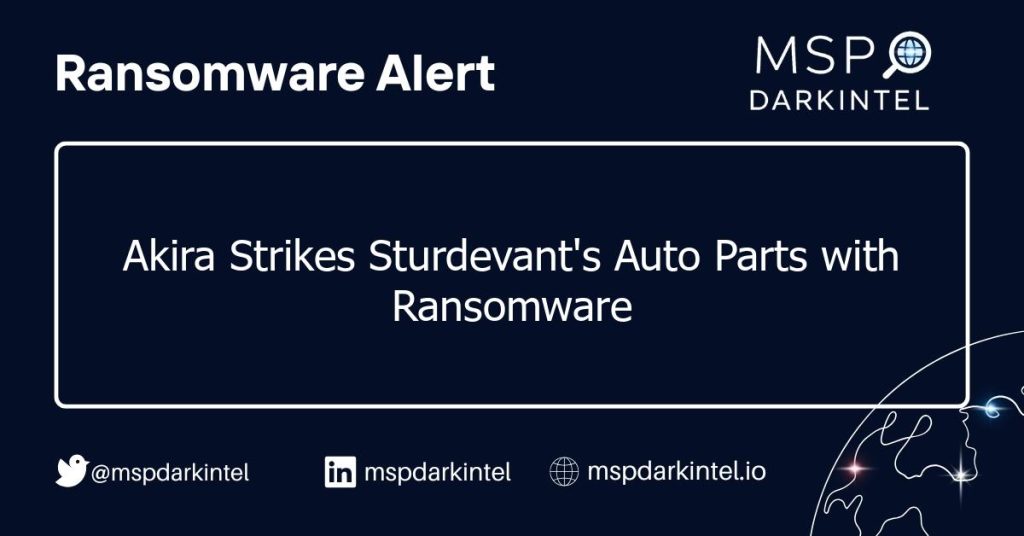 Akira Strikes Sturdevant’s Auto Parts with Ransomware