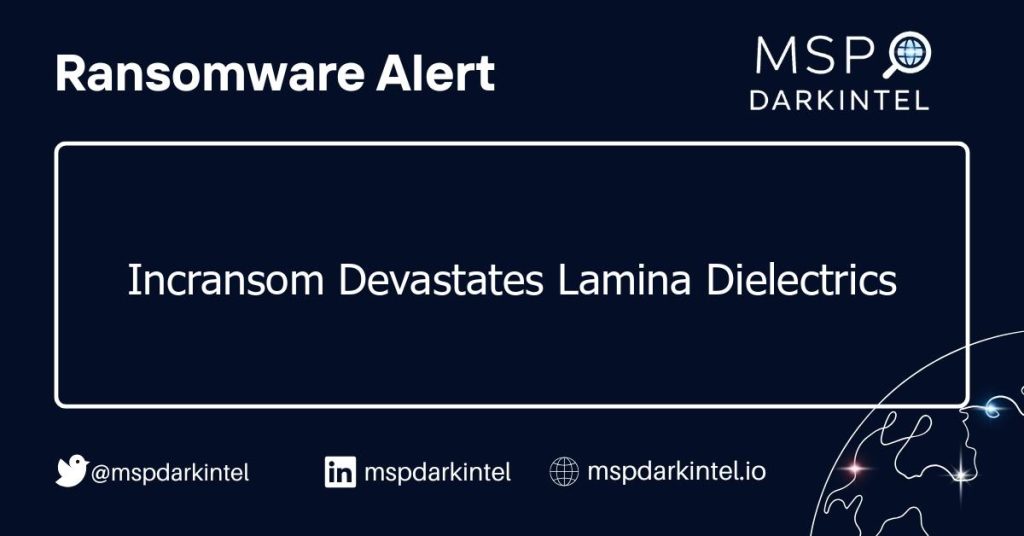 Incransom has targeted Lamina Dielectrics in the UK, threatening to release sensitive data unless negotiations are initiated.