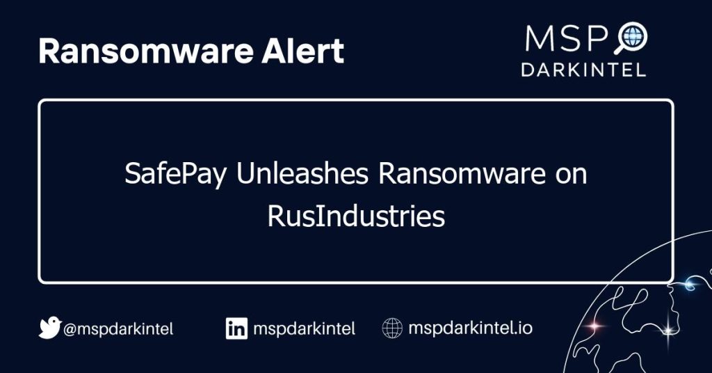 On June 14, 2025, the ransomware group SafePay targeted RusIndustries, threatening to release sensitive data unless their demands are met.