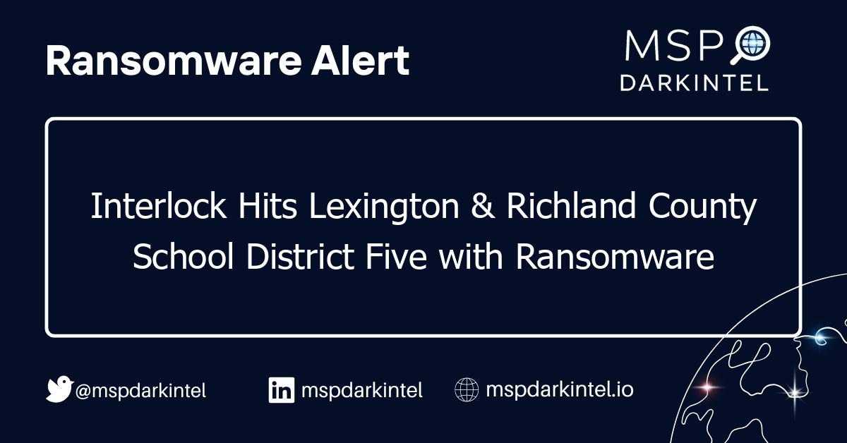 On June 24, 2025, the ransomware group Interlock publicly claimed responsibility for an attack targeting Lexington & Richland County School District Five (lexrich5.org), a U.S.-based educational organization. According to the threat actor’s post, they intend to release sensitive data unless negotiations are initiated.
