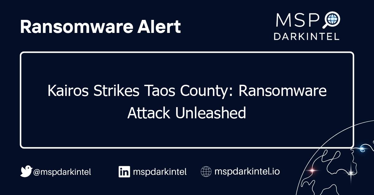 On June 19, 2025, the ransomware group Kairos publicly claimed responsibility for an attack targeting Taos County (taoscounty.org), a USA-based organization. According to the threat actor’s post, they intend to release sensitive data unless negotiations are initiated.